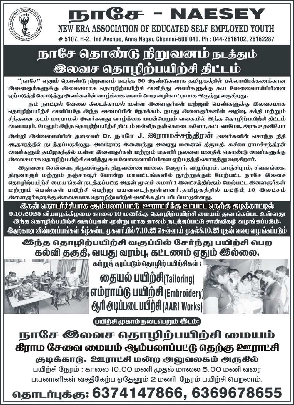 - NAESEY Free Skill Training Centre at Ramapuram, Chennai